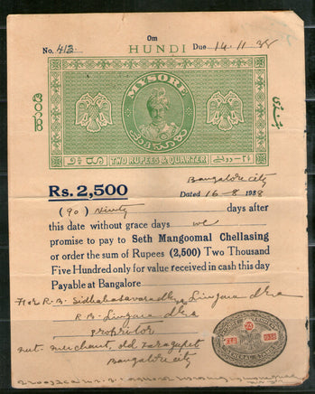 India Fiscal Mysore State 2Rs.4As Hundi Paper T65 KM664 Revenue # 15174G