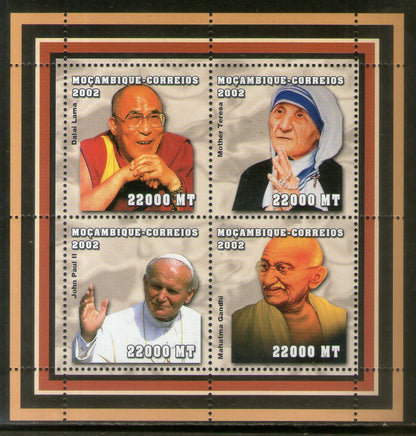 Mozambique 2002 Mahatma Gandhi of India Teresa Dalai Lama Paul Sc 1610 M/s MNH # 8372