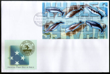Micronesia 2001 Whales Fishes Marine Life Animals Sc 417 Sheetlet FDC # 19127