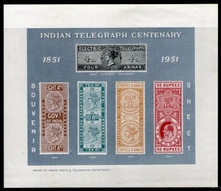 India 1953 Indian Telegraph Centenary Souvenir Sheet / Miniature Sheet MNH