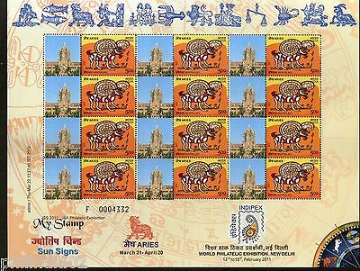India 2011 My Stamp Sun Sign Aries Victoria Terminus Bombay Tourism Sheetlet MNHFree counters!