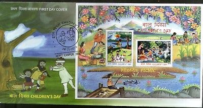 India 2016 Children's Day Picnic with Parents Painting Art M/s on FDC# F3107 Free counters!