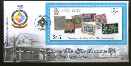 Fiji 2021 150 Years of Postal Services Stamps on Stamp M/s on FDC # 196