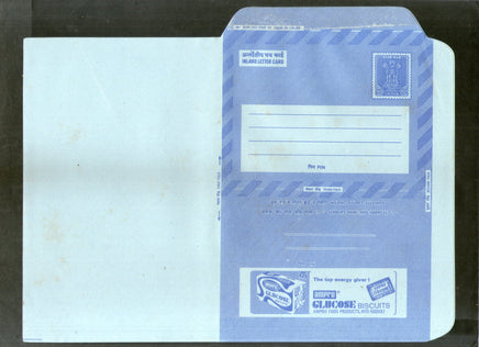 India 1976 20p Ashokan Inland Letter Card with Glucose Biscuits Advertisement ILC MINT # 34
