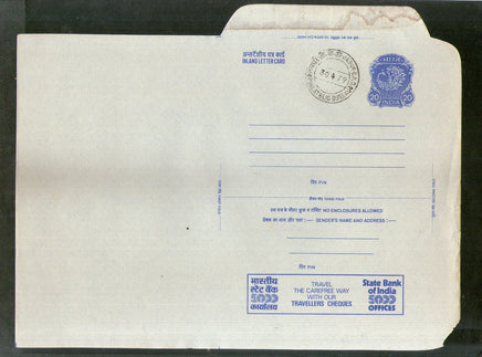 India 1979 20p Peacock Inland Letter Card with State Bank Travellers Cheques Advertisement ILC MINT # 147FD
