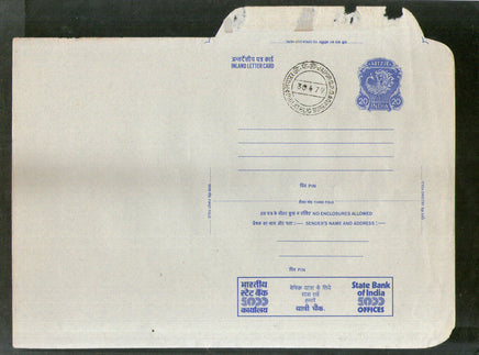 India 1979 20p Peacock Inland Letter Card with State Bank Travellers Cheques Advertisement ILC MINT # 148