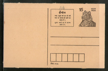 India 1990 15p Tiger Indene Gas Advt. Postal Stationery Post Card # PCA116