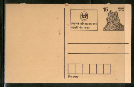 India 1991 15p Tiger LIC Advertisement Post Card # PCA129