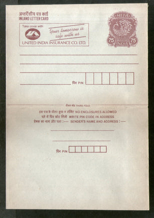 India 1992 75p Peacock Inland Letter Card with United India Insurance Co. Advertisement ILC MINT # 326FL