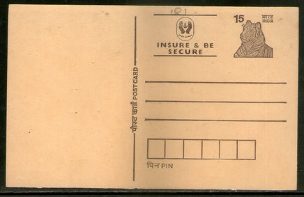 India 1993 15p Tiger Life Insurance Advertisement Post Card # PCA159