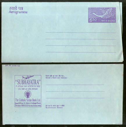 India 1993 650p Swan Subhyatra Catholic Syrian Bank Advt. on Postal Stationery Aerogramme MINT # 16472
