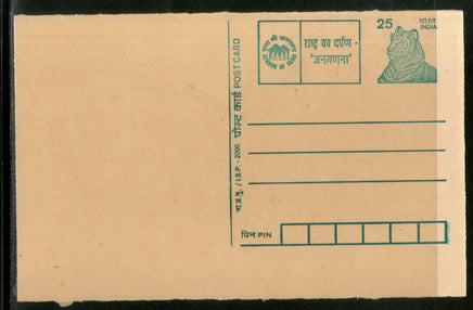 India 2000 25p Tiger CENSUS Advertisement Postal Stationery Post Card # PCA286