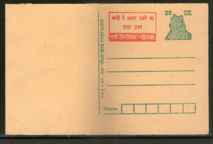 India 2000 25p Tiger Family Planning Advt. Postal Stationery Post Card # PCA278