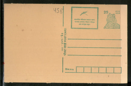 India 2000 25p Tiger Malaria Mosquito Health Advt. Postal Stationery Post Card # PCA262