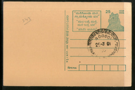 India 2001 25p Tiger Environment Advertisement Postal Stationery Post Card # PCA325