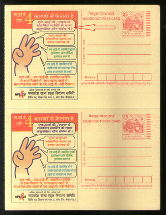 India 2005 Aids Awareness Advt. Meghdoot Post Card Error Colours Difference Mint # 9602