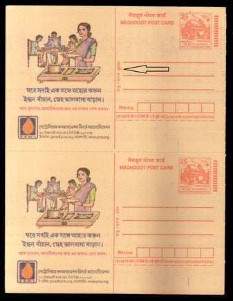 India 2004 Petroleum Advt. Meghdoot Post Card Error extra hyphen on printers' name with normal. Mint # 9563
