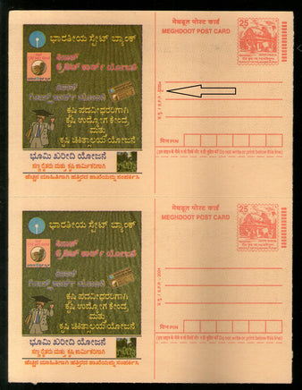 India 2004 SBI Advt. Meghdoot Post Card Error extra hyphen on printers' name with normal. Mint # 9568