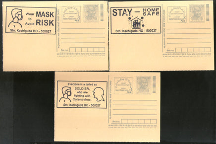 India 2020 3 Diff. COVID-19 Black Slogan Cancellation on Gandhi Post Card Mint # 16100