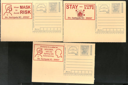 India 2020 3 Diff. COVID-19 Red Slogan Cancellation on Gandhi Post Card Mint # 16260