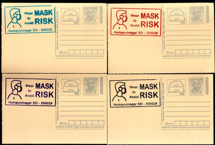 India 2020 Wear Mask COVID-19 4 diff Colour Slogan Cancellation on Gandhi Post Card Mint