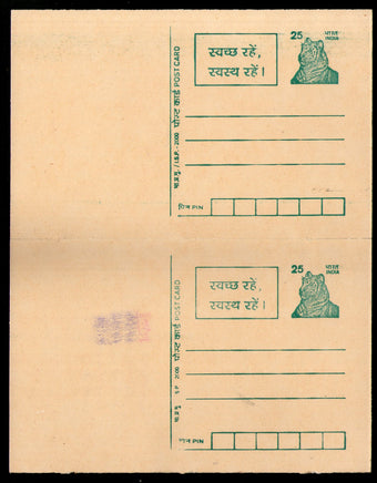 India 25p Tiger Post Card ERROR "/ I" Missing In Lower PC Vertical Printing # 9054 Free counters!
