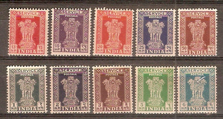 India 1957 Service Series WMK-STAR TYPO SG O165b-74a 10V MNH RARE # 2311