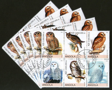 Angola 2000 Birds Snowy Owl Long Ear Owl Setenant BLK/6 Cancelled X5 # 13485 Free counters!