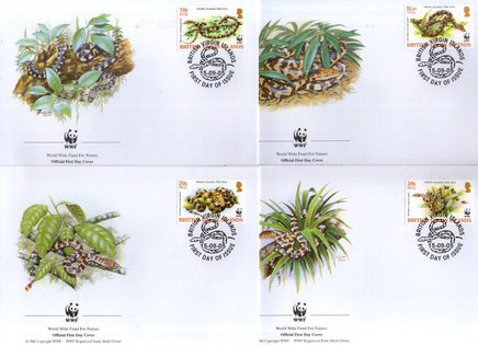 British Virgin Islands 2005 WWF Boa Snake Reptiles Wildlife Sc 1051-54 FDCs # 372