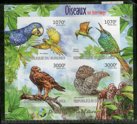 Burundi 2012 Owl Eagle Parrots Birds Wildlife Sc 1123 Imperf M/s MNH # 8116
