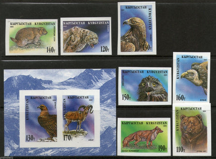 Kyrgyzstan 1995 Bear Leopard Raptor Wild Life Bird Animal Sc 53-60 7v+M/s IMPERF MNH # 12966