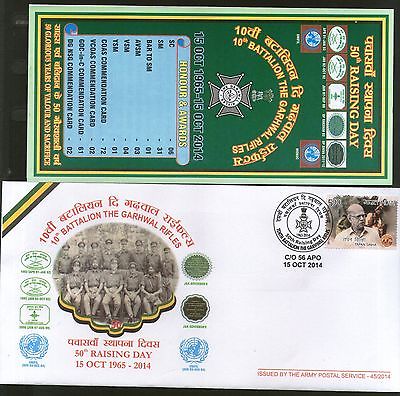 India 2014 Battalion The Garhwal Rifles Raising Day Coat of Arms APO Cover #7200