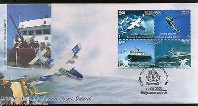 India 2008 Indian Coast Guard Ship Hovercraft Helicopter Setenant Phila-2380 FDC