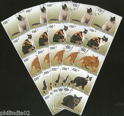 Chad 1998 Cats Domestic Animals Wild Life Fauna Setenant Cancelled x5 # 6211
