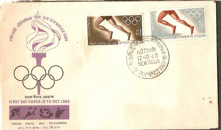India 1968 XXI Olympic Games Mexico 2v Phila 467-68 FDC