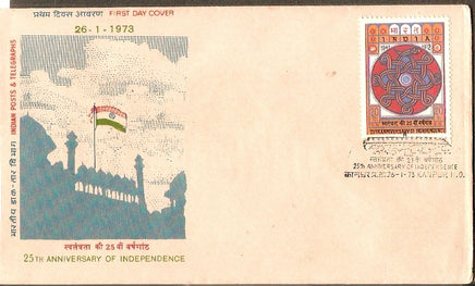 India 1973 25th Anni. of Independence Ashok Chakra Tri Colour 1v Phila-565 FDC