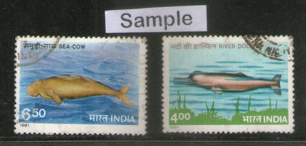 India 1991 Endangered Marine Mammals Fish Dolphin 2v Phila-1270a Used Set