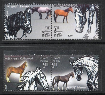 India 2009 Horses of India Setenant Phila-2526-29 MNH # 449