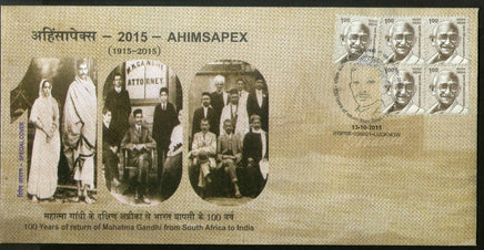 India 2015 Ahimsapex Return of Mahatma Gandhi From South Africa Special Cover # 18371