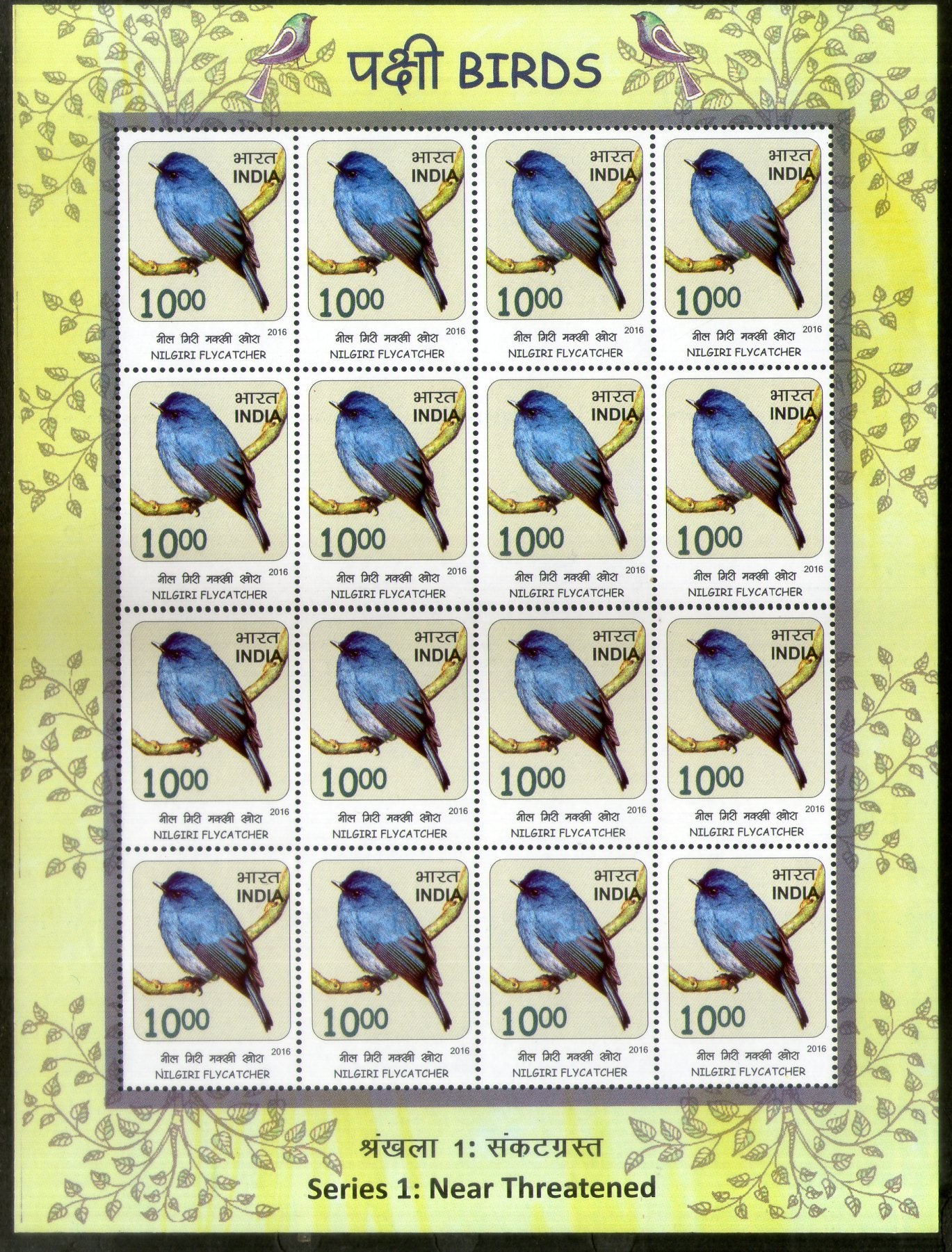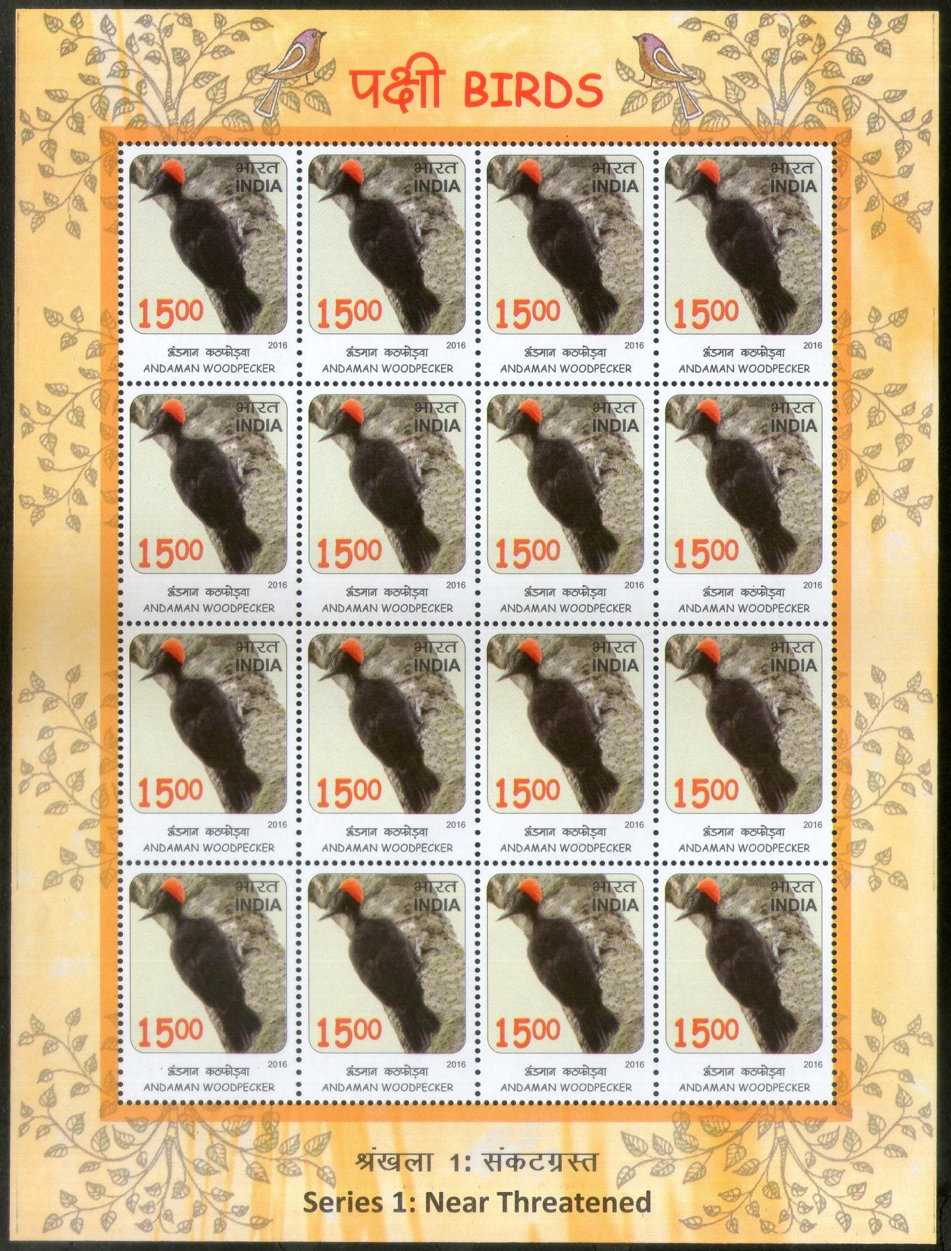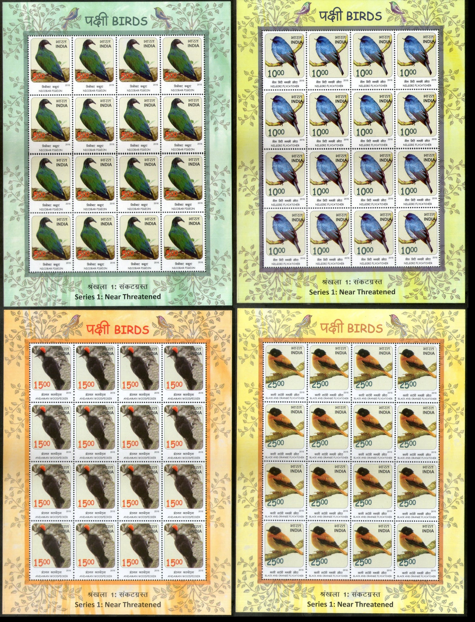 India 2016 Birds Near Threatened Pigeon Flycatcher Woodpecker Wildlife Fauna Set of 4 Sheetlets MNH