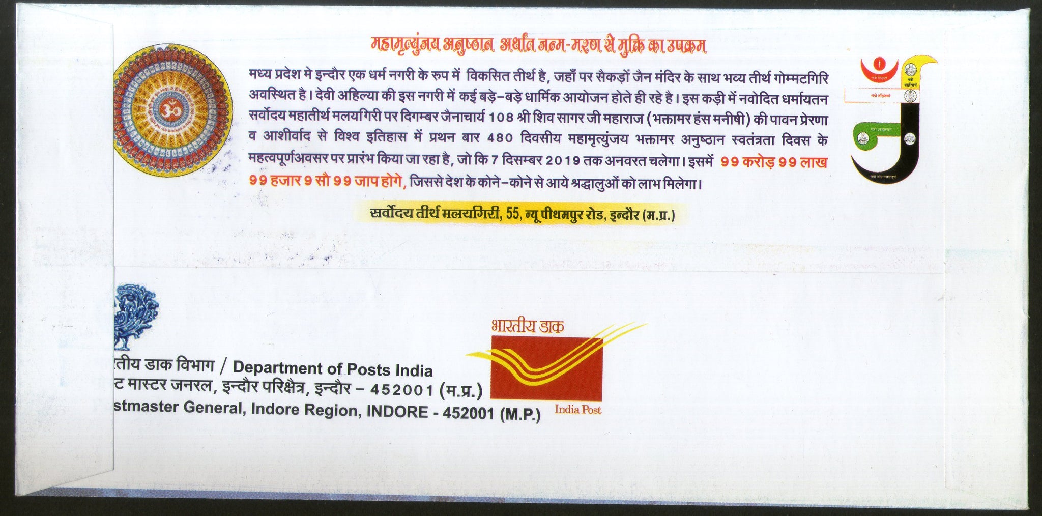 India 2018 Shivsagarji Mahraj Jainism Special Cover # 18689