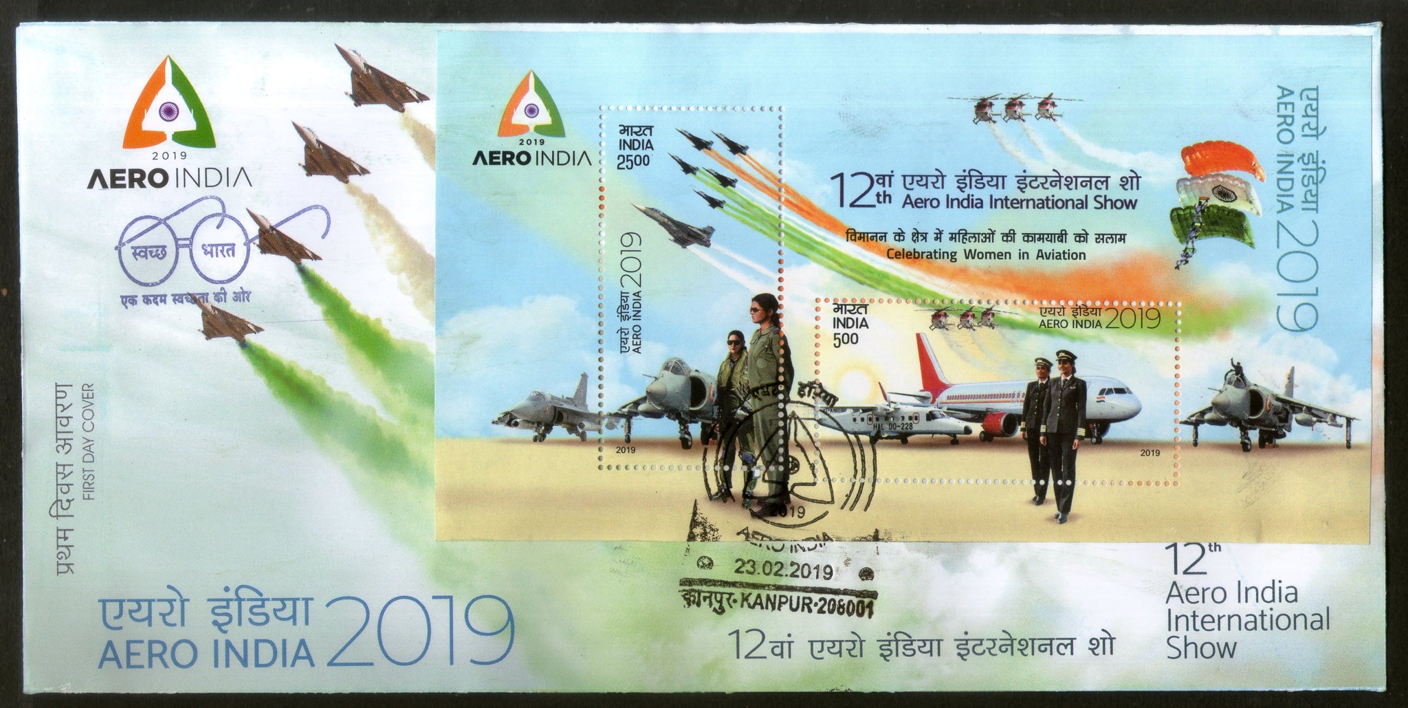 India 2019 Aero India Women in Aviation Aeroplane Transport Flag M/s on FDC