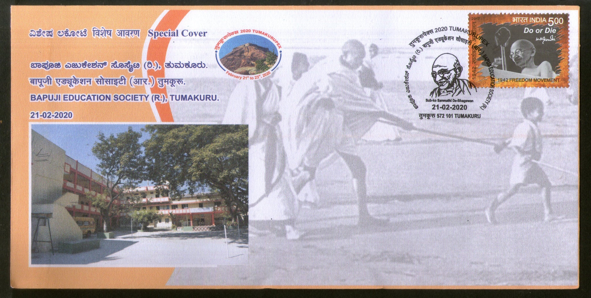 India 2020 Bapuji Education Society Mahatma Gandhi Tumkurpex Special Cover # 18559