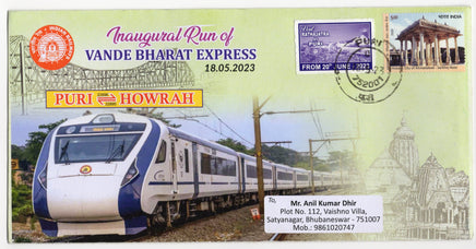 India 2023 Vande Bharat Express Rath Yatra Label Puri to Howrah Bridge Train Locomotive Special Cover # 7115