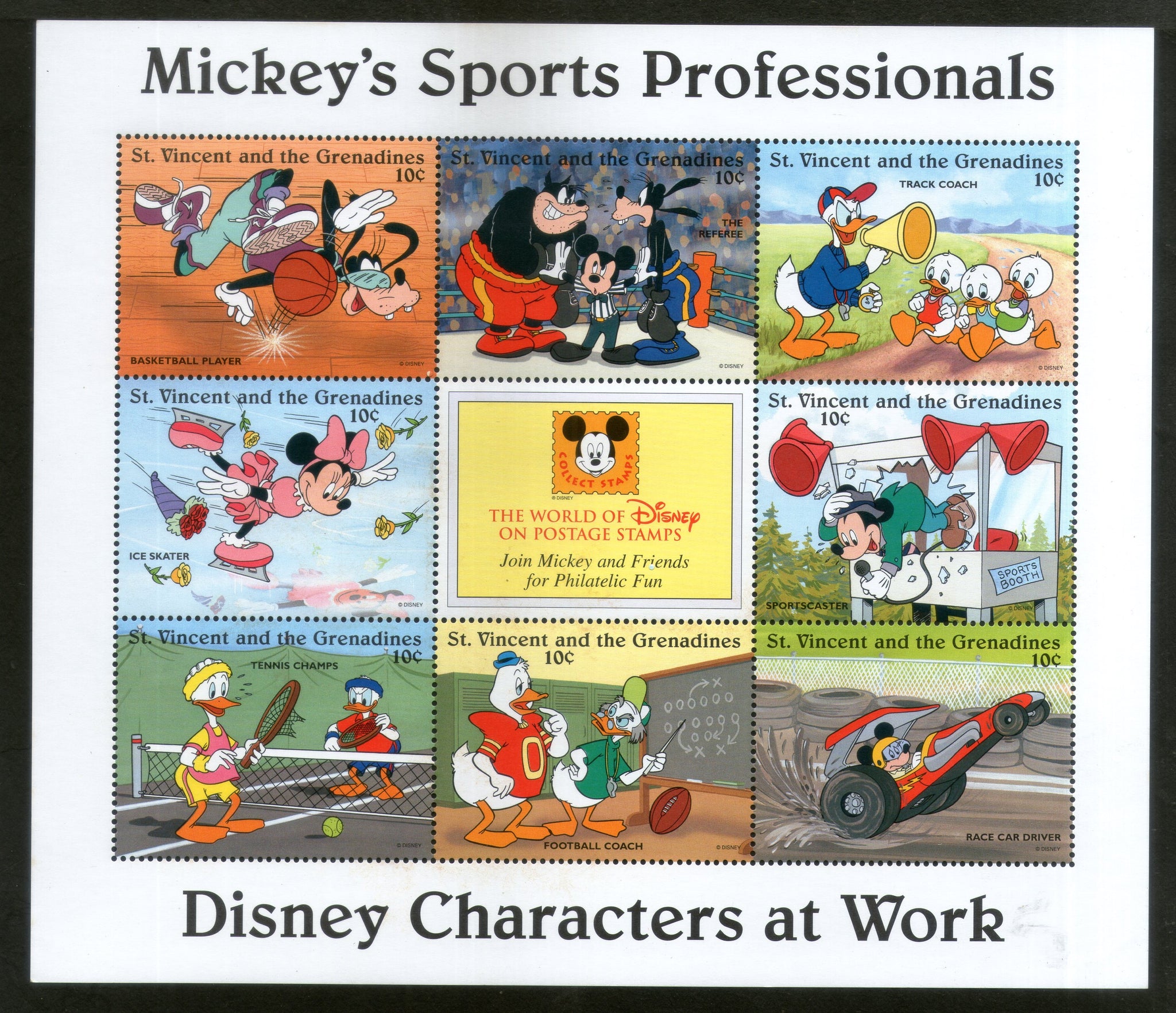 St. Vincent Walt Disney Mickey's Sports Professionals Disney Cartoon Sheetlet MNH # 15059Free counters!