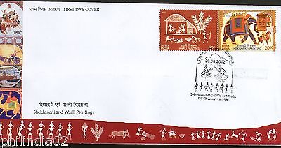 India 2012 Warli & Shekhawati Paintings Art Elephant 2v Se-Tenant FDC