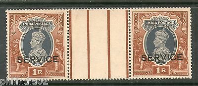 India 1937 King George VI 1 Re Service Phila-S146 Horizontal Gutter Pair MNH #23