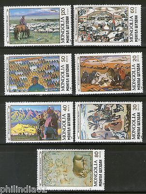 Mongolia 1990 Paintings of Animals Horse Camel Arts Sc 1821-27 MNH # 2334