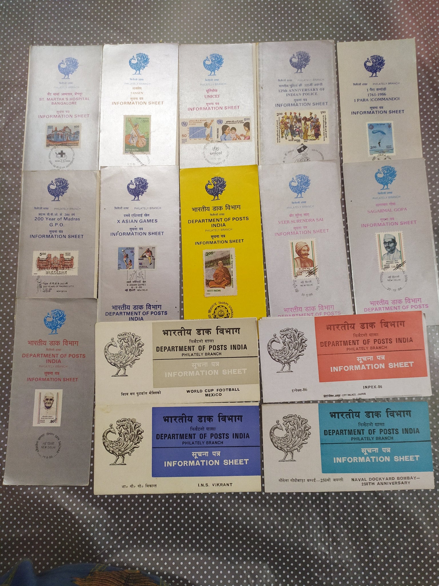 India 1986 15 Diff. Blank Folders Police UNICEF Football Ship Military Famous People # 84