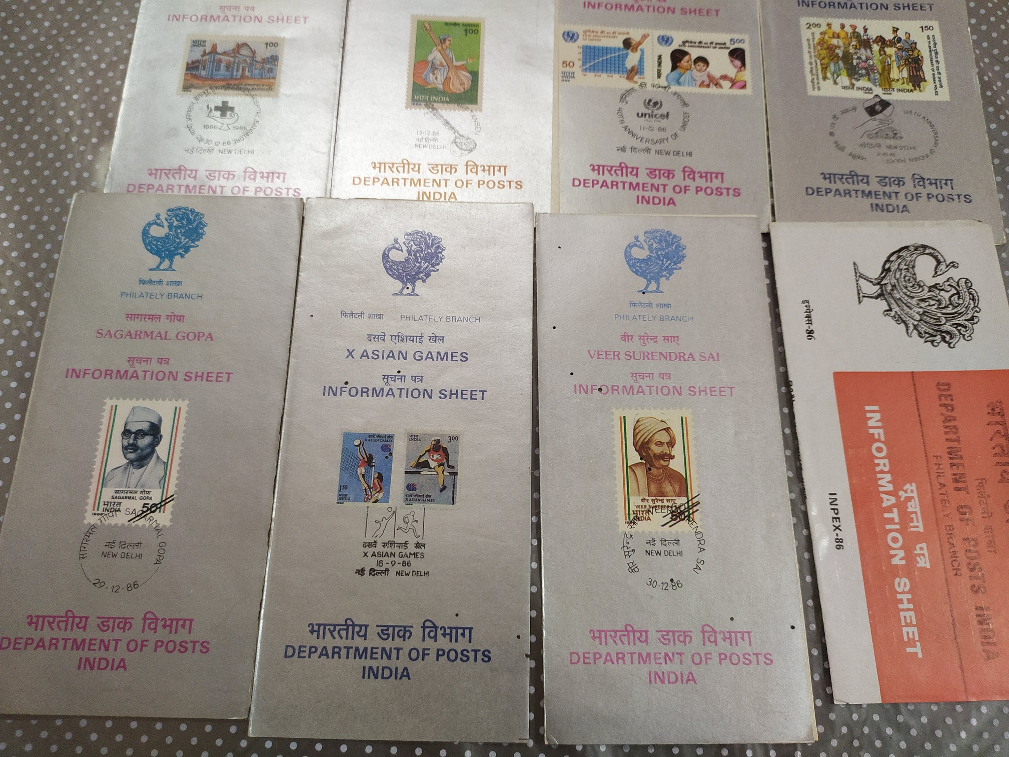 India 1986 8 Diff. Blank Folders Police UNICEF Football Military Famous People # 90